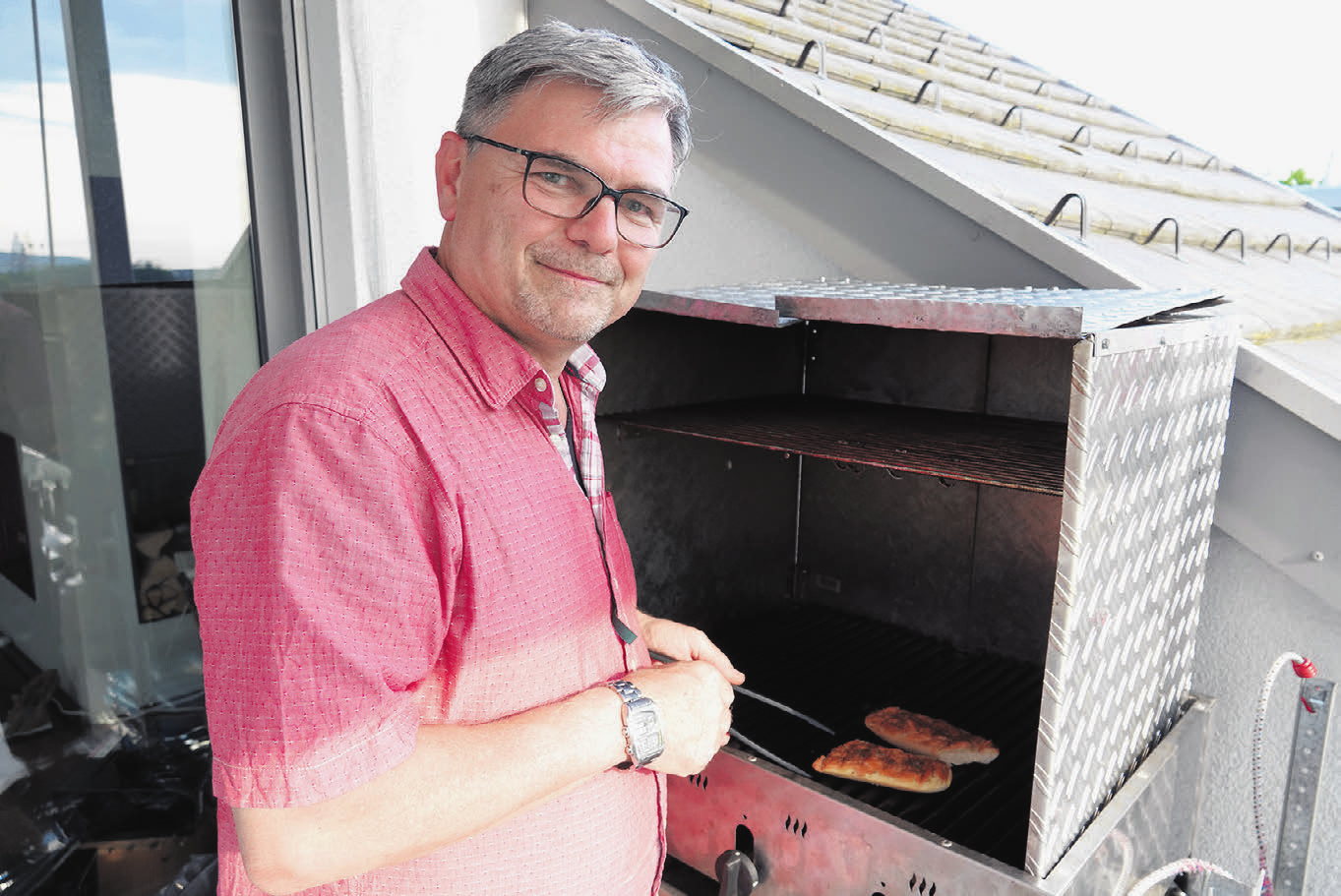 Er selber isst eigentlich alles gerne – ausser Fenchelsalat. «Gutes Essen ist mir wichtig, das muss auch nicht teuer sein.» Filet oder Entrecôte landen bei ihm selten auf dem Grill. Lieber macht er einen Braten oder bereitet weniger edle Stücke zu. Auf seinem Balkon steht auch kein sündhaft teurer Grill, sondern ein einfaches Gerät, das er selber für seine Bedürfnisse angepasst hat. Überhaupt stellt er seine Grills am liebsten selber zusammen. So hat er einen faltbaren Holzkohle-Grill entwickelt, den er je nach Bedarf vergrössern kann. Er ist ideal zum Mitnehmen.