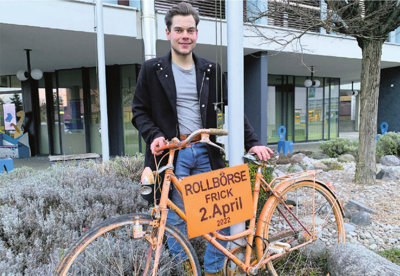 Der Fall ist klar. Raphael Daasch gehört mit einem dieser ausrangierten, orangen Velos mit dem Schild «Rollbörse, 2.4.2022» aufs Foto. Schliesslich laufen alle Fäden für den Event, bei dem auch im April wohl wieder weit über 200 Artikel angeboten werden, beim 21-Jährigen zusammen. Daasch stellt sich hin und wiegelt dann aber ab, verweist auf die Unterstützung seiner rund 20 Helferinnen und Helfer von der Jugendarbeit Wittnau, Gipf-Oberfrick und Frick: «Ohne sie könnte die Rollbörse nicht durchgeführt werden.» Und doch ist es so, dass er die Hauptverantwortung trägt; für die Werbung, den Ablauf von Velafrica (vgl. Angaben am Textende), das Anfragen der Helfer, den Einkauf und die Organisation für den Grillstand, das Bereitstellen aller Materialien und Hilfsmittel und schliesslich für den reibungslosen Ablauf am Tag selber. Teamarbeit sei ihm wichtig, betont der junge Mann.