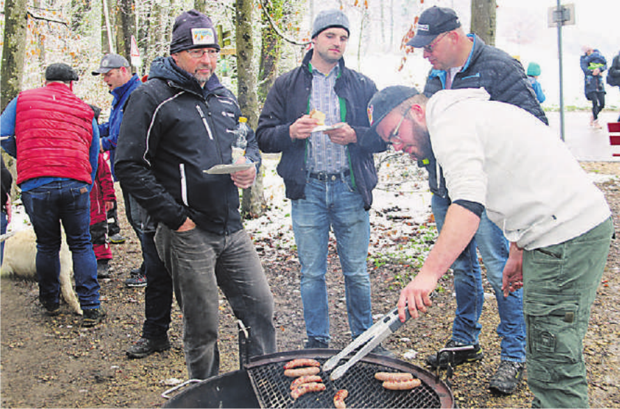 Es ist in den vielen Jahren Tradition geworden, dass ein Mitglied des Schwingklubs oder ein Schwingerfreund zum Schwingerausmarsch einlädt. Diesmal übernahm Martin Mangold mit seiner Partnerin Natascha. Die Beiden erhielten wertvolle Unterstützung von ihren Familien. Nach der Begrüssung der bunten Schar bei der Möhliner Schiessanlage Röti durch Klubpräsident David Schreiber begaben sich die rund 70 Wanderwilligen auf den Weg, um via Jagdhaus Talmatt und den Strickweg zur Feuerstelle auf dem Kleinen Sonnenberg zu gelangen. Dort gab es in der winterlichen Landschaft eine Zwischenverpflegung vom Grill, bevor der Weg hinab zum Möhliner Waldhaus unter die Füsse genommen wurde. Unterwegs und am Zielort erfreute Emil Hasler die Teilnehmenden mit Klängen aus seinem Alphorn.
