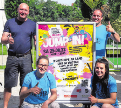 23.06.2022 RheinfeldenDas «Jump in!» wird vom Team der IGOJA Fricktal (Interessensgemeinschaft Offene Jugendarbeit Fricktal) das zweite Mal für Jugendliche ab 10 Jahren in Zusammenarbeit mit dem Team vom Freibad Rheinfelden durchgeführt. Der Anlass findet diesen Samstag, 25. Juni, von 14 bis 21 Uhr in der Badi Rheinfelden statt. Die IGOJA bietet unter anderem folgende Workshops zum Thema Elemente an Land und im Wasser an: «Kreativworkshop», «Kinder Stadtplan», «Henna», «Makramee», «Mitmachzirkus», «Tanzworkshop», «Grafittiworkshop», «Wasserbälle» und noch ein paar mehr Angebote. Zum Abschluss findet eine «Holi Party» statt. Die Workshops sind kostenlos.