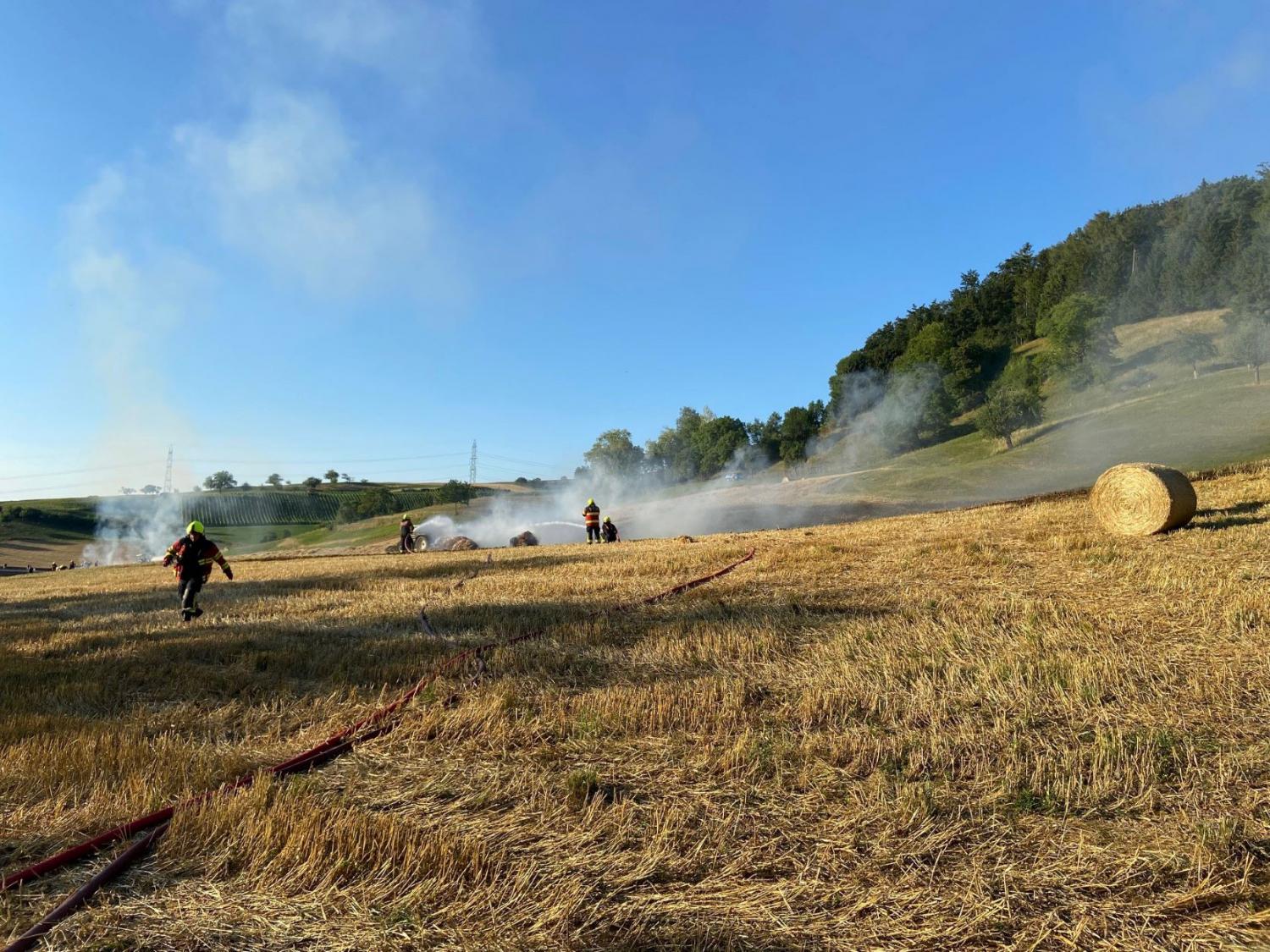 16.07.2022 Brennpunkt, SulzAm Freitag, kurz nach 19 Uhr, meldete eine Drittperson dem Feuerwehrnotruf einen grossflächigen Brand eines Stoppelfeldes an der Hauptstrasse zwischen Sulz und Mönthal. Ein Landwirt war am Freitagabend damit beschäftigt, das auf dem Feld liegende Stroh zu Ballen zu pressen. Dabei geriet ein Strohballen in Brand. Das Feuer griff sofort auf das Stoppelfeld über. Die Feuerwehr Laufenburg war mit einem Grossaufgebot vor Ort. Es gelang in der Folge, das Feuer einzudämmen und zu löschen. Beim Brand wurde niemand verletzt. Ausser dem verbrannten Stroh entstand kein Sachschaden. Die Abklärungen der Kantonspolizei sind noch im Gange.