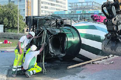 Beton-Laster kippt, Fahrer leicht verletzt