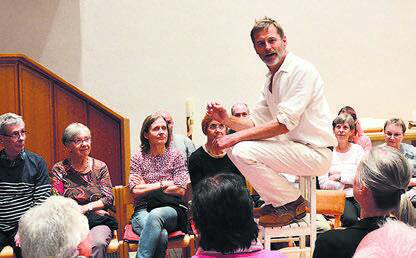11.10.2022 Kultur, MöhlinIn der reformierten Kirche Möhlin wurde im Rahmen der Reihe «FreiTagsZeit» der musikalisch untermalte Theatermonolog «Abrahams Kinder» aufgeführt. Der Schauspieler Rainer Frank und der Musiker Martin Engelbach führten unter der Regie von Andreas Sigrist ein Stück auf, das die Existenz der drei Religionen Judentum, Islam und Christentum und das ewige Thema des Einzigen Gottes zu erklären versucht. Das zweistündige Stück weckte Neugierde und Betroffenheit, es informiert subtil und respektvoll und mit Fachwissen über die drei Religionen und deren Schriften. Das Publikum, welches sich auf Stühlen im Altarraum gegenübersass, erlebte in einem fast intimen Rahmen hautnah höchste Schauspielkunst. (mgt)