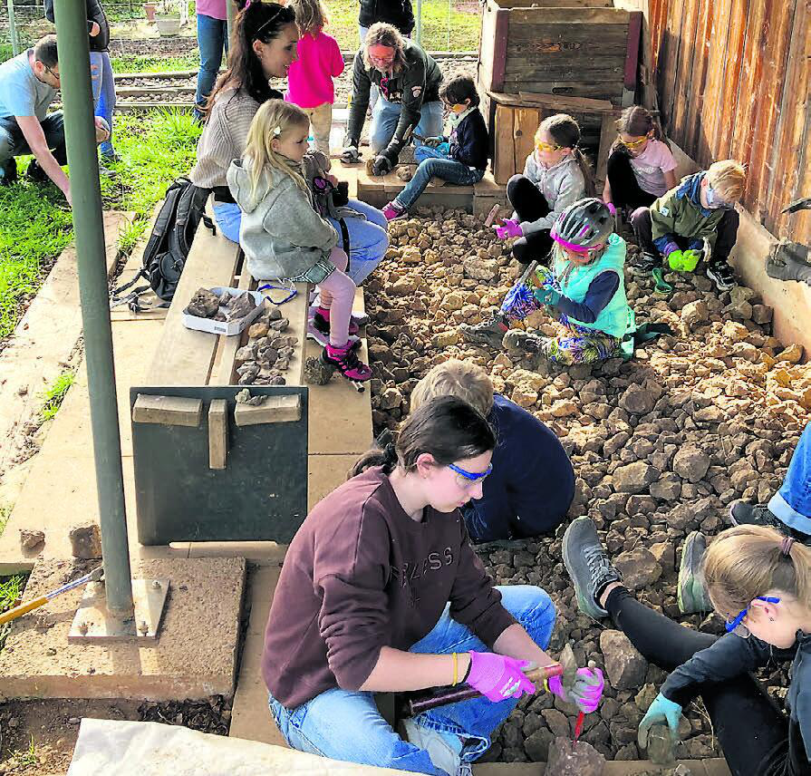 08.11.2022 FricktalDer Elternverein Wegenstetten bot Familien einen spannenden Tag im Bergwerk Herznach mit Besichtigung des Stollens, einem Rundgang durchs Museum und Fossiliensuche auf dem Klopfplatz. Mit Taschenlampen und Helm ausgerüstet führte Georg Burkhardt die Gruppe in den Stollen, dorthin, wo früher Eisenerz abgebaut wurde. Jede Ecke wurde ausgeleuchtet – bis endlich an der Decke ein wunderschöner Ammonit entdeckt wurde. Zurück beim Museum konnte die Sammlung von Versteinerungen bestaunt werden. Ein historischer Film zeigte auf, wie Eisenerz abgebaut wurde. Auf dem Klopfplatz wurde bald nach kleinen Schätzen im Gestein gesucht. Dazu gab es Handschuhe und Schutzbrille, Hammer und Meissel. Einige waren sehr fleissig und sehr ausdauernd – dafür aber auch erfolgreich! Es ist sehr spannend, «seinen» eigenen Ammoniten zu entdecken und freizuhämmern. Deshalb: Ein Hammeranlass war das! (mgt) Foto: zVg