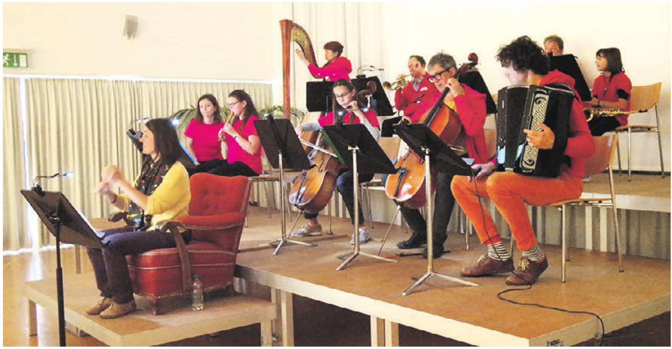 Die für diesen Anlass zusammengestellte und mit hauseigenen Kompositionen vertonte Geschichte wurde von den Mitgliedern der Musikschule Unteres Fricktal sehr lebendig vorgetragen. Das Lehrerinnen- und Lehrer-Orchester wurde durch viele Instrumentalschülerinnen und -schüler verstärkt. Insgesamt wurde die knappe Stunde mit hoher Konzentration und Begeisterung genossen. Den Abschluss der musikalischen Geschichte bildete ein gesungener Tanz, den die Schüler vorgängig mit ihren Klassenlehrpersonen einstudiert hatten und dies stimmstark und choreographisch unter Beweis stellten. Dazu wurden sie von der Erzählerin zu einem Bodyperkussion-Rhythmus angeleitet, den sie mit zurück in ihre Schulzimmer nehmen sollten. (mgt)
