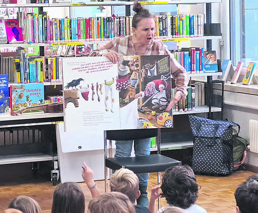 Eingeladen war die Illustratorin und Bilderbuchautorin Regi Widmer, die viele Kinder in Möhlin bereits von ihrem Buch «Die Savannenkicker» kennen. Nun kam Widmer mit ihrem neuen Buch «Überfall aufs Samichlaushaus» nach Möhlin. Die Geschichte dreht sich um drei Räuber, die in einer ungemütlichen, feuchten und kalten Räuberhöhle wohnen. Darum planen Räuberhauptfrau Jessie und ihre Bande einen Überfall aufs gemütliche und warme Samichlaushaus. Ein Glück, dass die kleine Fledermaus nicht schlafen kann und alles hört: So erzählt sie den anderen Waldtieren von dem fiesen Plan – nur leider kommt die Nachricht durchs viele Weitererzählen völlig verdreht bei Samichlaus und Schmutzli an.