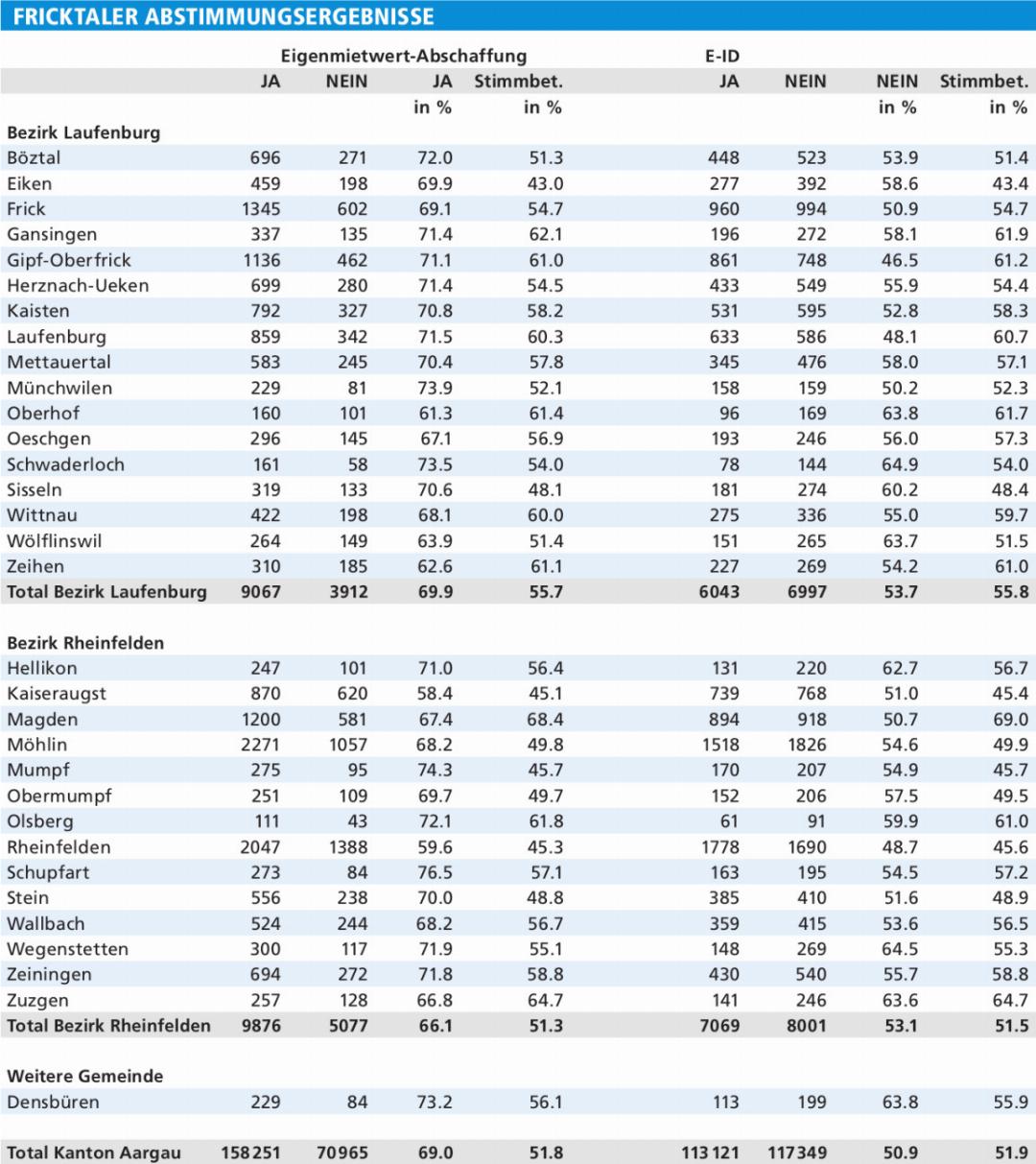 FRICKTALER ABSTIMMUNGSERGEBNISSE