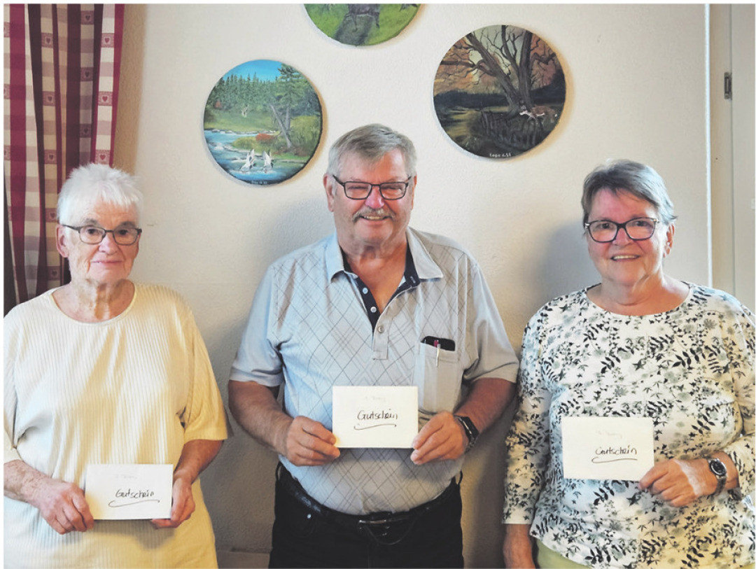 Zusammen mit dem 1. Jassnachmittag wurde eine Gesamtrangliste erstellt. Auch da durfte Philipp Rheinegger mit 6096 Punkten aufs höchste Treppchen steigen. Er gewann vor Bernadette Rippstein mit 6010 und Rita Stern mit 5976 Punkten. Diese drei Geehrten erhielten aus der Kasse der Vereinigung je einen Gutschein.