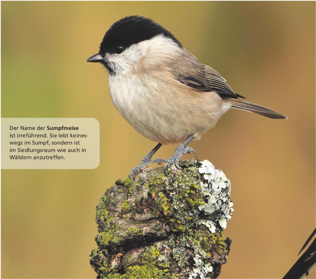 Der Name der Sumpfmeise ist irreführend. Sie lebt keineswegs im Sumpf, sondern ist im Siedlungsraum wie auch in Wäldern anzutreffen.