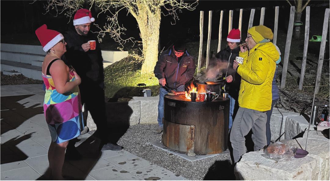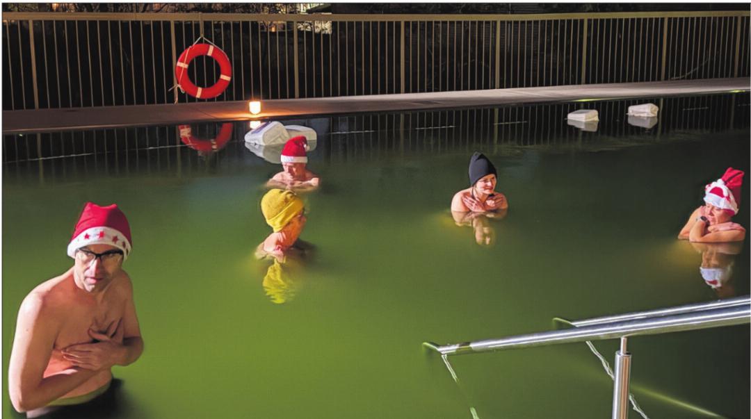 Probleme gab es bisher keine. Das liegt zu einem grossen Teil an Christine Gasser. Die Pf legefachfrau ist eine geübte Eisbaderin, gewohnt ans Bad im hauseigenen Schwimmteich. Gasser instruiert alle Ankömmlinge und begleitet Eisbad-Neulinge ins Becken. Atmung kontrollieren, Kopf schützen, am besten eine Mütze tragen – über den Kopf geht sehr viel Wärme verloren – Hände vor der Brust kreuzen, nicht untertauchen, nicht länger als eine Minute pro Grad im Wasser bleiben und nach dem Bad in genug grosse Schuhe steigen, damit die Zehen bewegt werden können. Die Füsse, das scheint allen gleich zu gehen, bleiben am längsten kalt.
