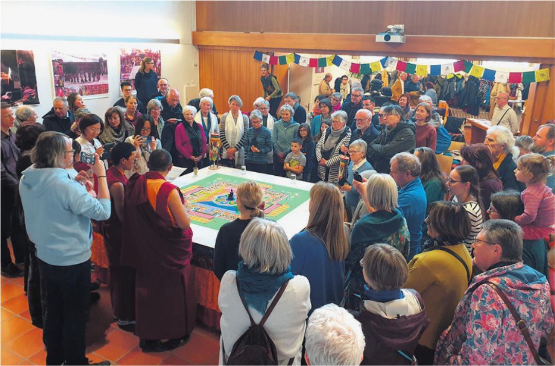 Er erzählte von einer Frau aus dem Dorf, die von ihrer Enkelin gefragt wurde, was denn nun mit dem Mandala geschehe, wo es fertiggestellt sei. «Die Mönche wischen den Sand wieder zusammen und streuen ihn in den Rhein», antwortete die Oma. Das symbolisiere die Vergänglichkeit. «Ist das dann wie Sterben?», fragte das Kind. «Ja, das ist es», antwortete die Oma. Das gefalle ihm nicht, sagte das Kind, das kürzlich Abschied vom Urgrossvater nehmen musste.