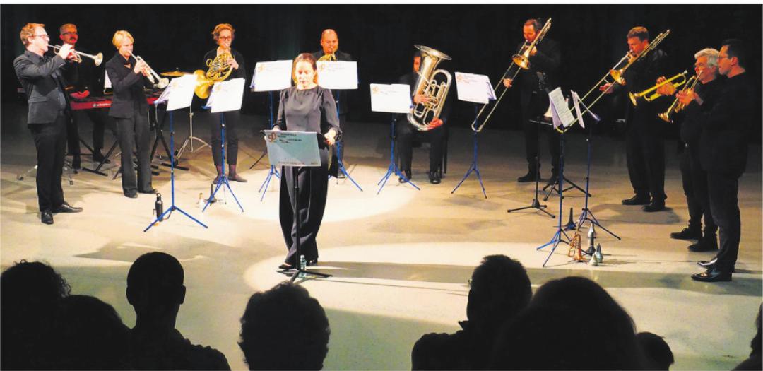 Die Gesangseinlagen brachten ihre ausdrucksstarke und klagvolle Stimme wunderbar zum Ausdruck. Wird eine Geschichte noch von Live-Musik umrahmt, was mit der Brasserie der Fall war, ist die Begeisterung spürbar. Mit der Musik wurde das, was man hörte und sah, noch viel lebendiger. Von neun Blechbläserinnen und Blechbläsern und einem Schlagwerk wurden rund um die Geschichte die verschiedenen Stimmungen der Erlebnisse vermittelt. So ertönten das Cornet, die Posaune und weitere Instrumente. Mal leise, mal laut und dann wieder schnell und langsam.