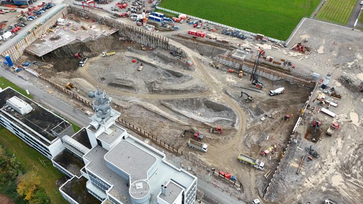 27 Meter tief in den Boden und 30 Meter in die Höhe wird das geplante Technologiezentrum gebaut. «Der Baufortschritt läuft wie geplant. Mittlerweile sind wir im Kopfbau vorne schon auf 15 Metern Tiefe angekommen», äussert sich Schmid zum aktuellen Stand der Arbeiten. Zum vorgesehenen Zeitplan betont er: «Ambitioniert und nach wie vor realistisch. Wir befinden uns auf Kurs.» Das Technologiezentrum Laufenburg mit riesigem Batteriespeicher und einem hochleistungsfähigen Rechenzentrum für künstliche Intelligenz soll im Sommer 2028 vollständig in Betrieb genommen werden. Bis dahin gibt es noch viel zu tun.