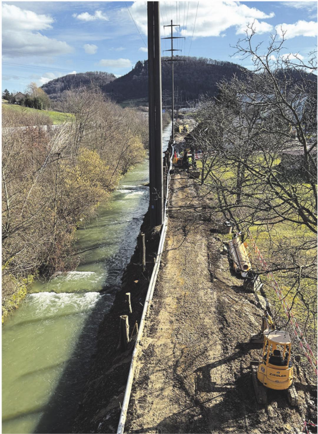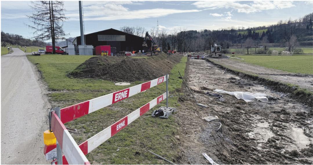 Die neue Kanalisationsleitung des Abwasserverbands Bözberg West führt von Hornussen der Sissle entlang und unter der Autobahn hindurch nach Frick. Dort am Kontenpunkt, hinter den Häusern am oberen Ende der Widengasse, erfolgte vor ein paar Tagen der Zusammenschluss mit der bestehenden Leitung in Frick. Im Zuge der Grabungsarbeiten für die neue Abwasserleitung wurden auch neue Stromleitungen verlegt. Weil die Arbeiten nahe an den Strommasten erfolgen, werden diese nun im März noch verstärkt, bevor dann im Mai im Gebiet Stieracker mit der Renaturierung der Sissle begonnen werden kann, wie Fricks Bauverwalter Marcel Herzog auf Anfrage der NFZ erklärte.