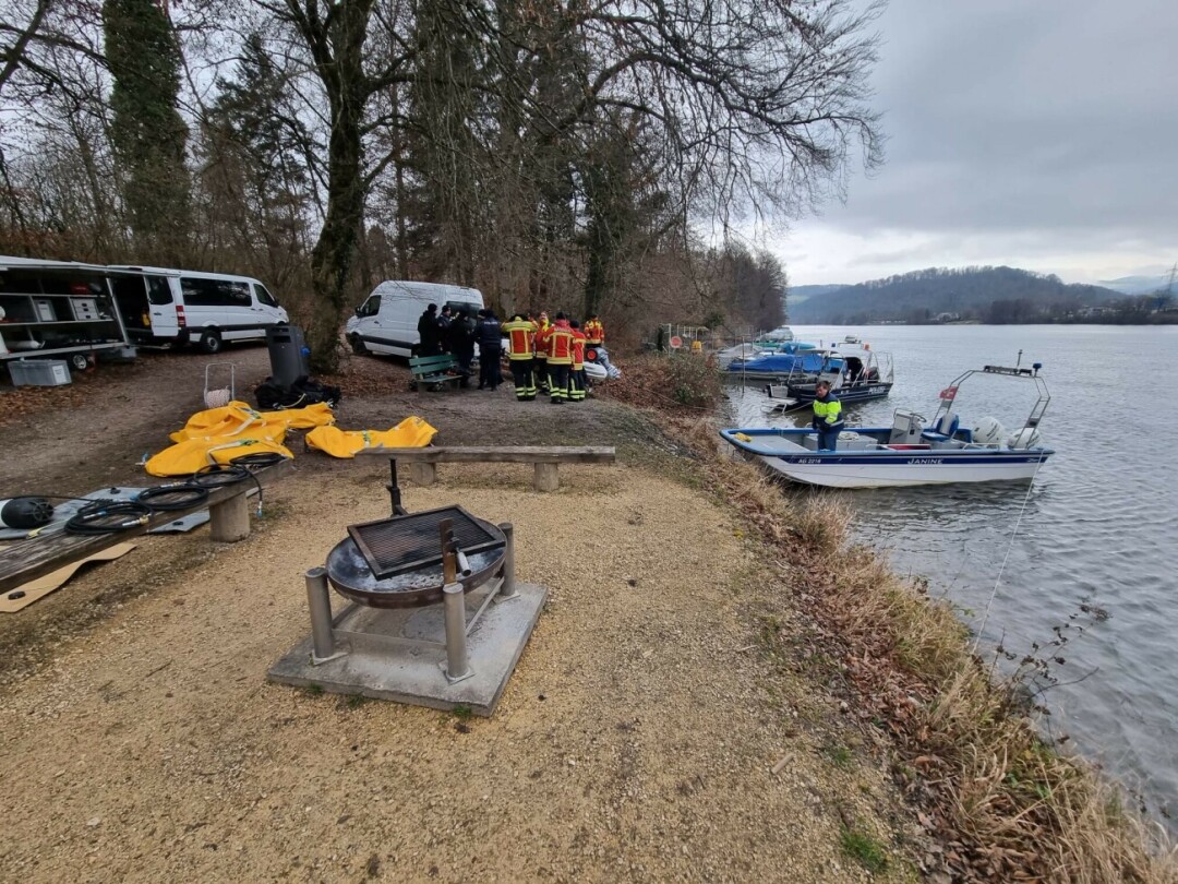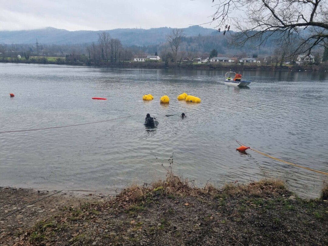 23.12.2025 WallbachReibungslose Bergung des im Rhein bei Wallbach untergegangenen Personenwagens: Im Einsatz heute Dienstag standen nebst der Kantonspolizei Aargau und der Feuerwehr Möhlin auch Spezialisten der Polizei Basel-Landschaft mit einer Tauchereinheit.