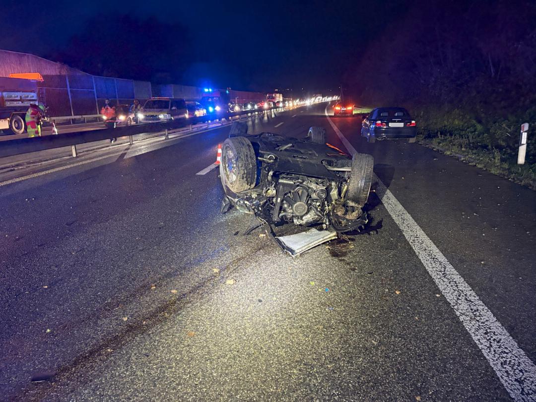 Der erste der beiden Unfälle ereignete sich um 20.45 Uhr. In einem BMW 330 Cabrio war ein 18-Jähriger in Richtung Zürich unterwegs. In der Folge verlor er die Kontrolle über den Wagen, geriet auf die Böschung, überschlug sich und prallte gegen die Mittelleitplanke. Eine Ambulanz brachte den 18-jährigen Kosovaren aus dem Fricktal ins Universitätsspital Basel. Nach ersten Angaben sind seine Verletzungen nicht schwerwiegend. Am Auto entstand Totalschaden.
