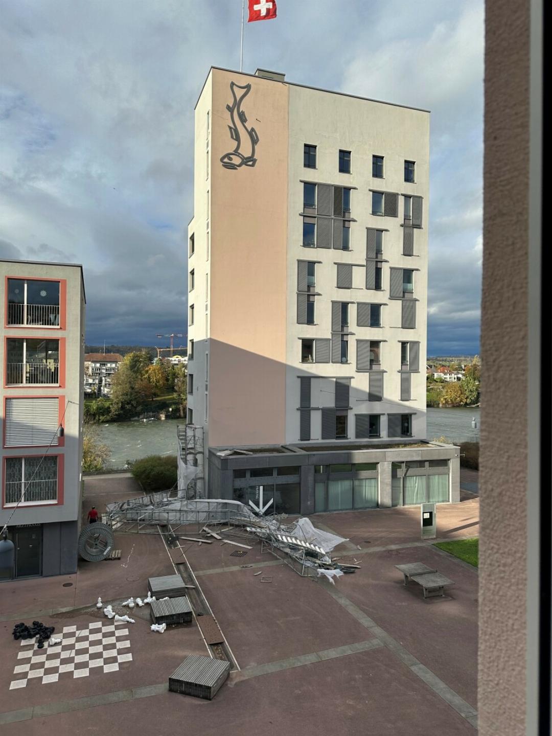 Im Rheinfelder Salmenpark brachten die Orkanböen sogar ein grosses Baugerüst zum Einsturz. Dabei war offenbar grosses Glück im Spiel: Gemäss Augenzeugen kamen keine Personen zu Schaden.