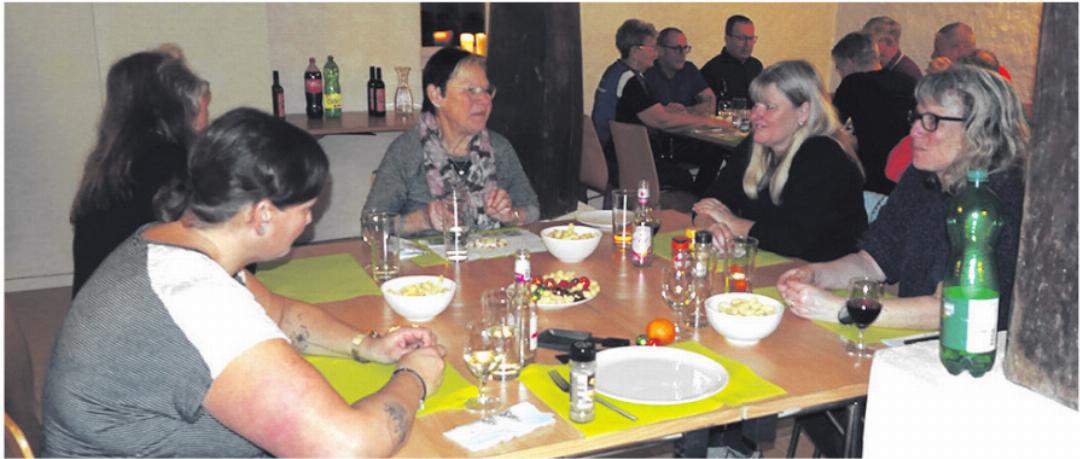 Nach einem rund einstündigen Fussmarsch fanden sich die Mitglieder von Frauenturnverein und Männerriege im Christkatholischen Pfarrhof ein, wo die letzten Vorbereitungen für das Nachtessen bereits liefen. Im dekorierten Saal und an drei Würfeltischen verteilten sich die 19 Teilnehmenden und genossen ein Raclette mit vielen Zutaten. Ein vielseitiges Dessert-Angebot rundete den kulinarischen Teil ab. Erinnerungen an vergangene Turnfeste lebten auf, dazu gab es reichlich zu erzählen. Auch dass die beiden Vereine im Jahr 2026 keinen Startplatz an einem Turnfest erhalten haben, wurde rege besprochen. (mgt)