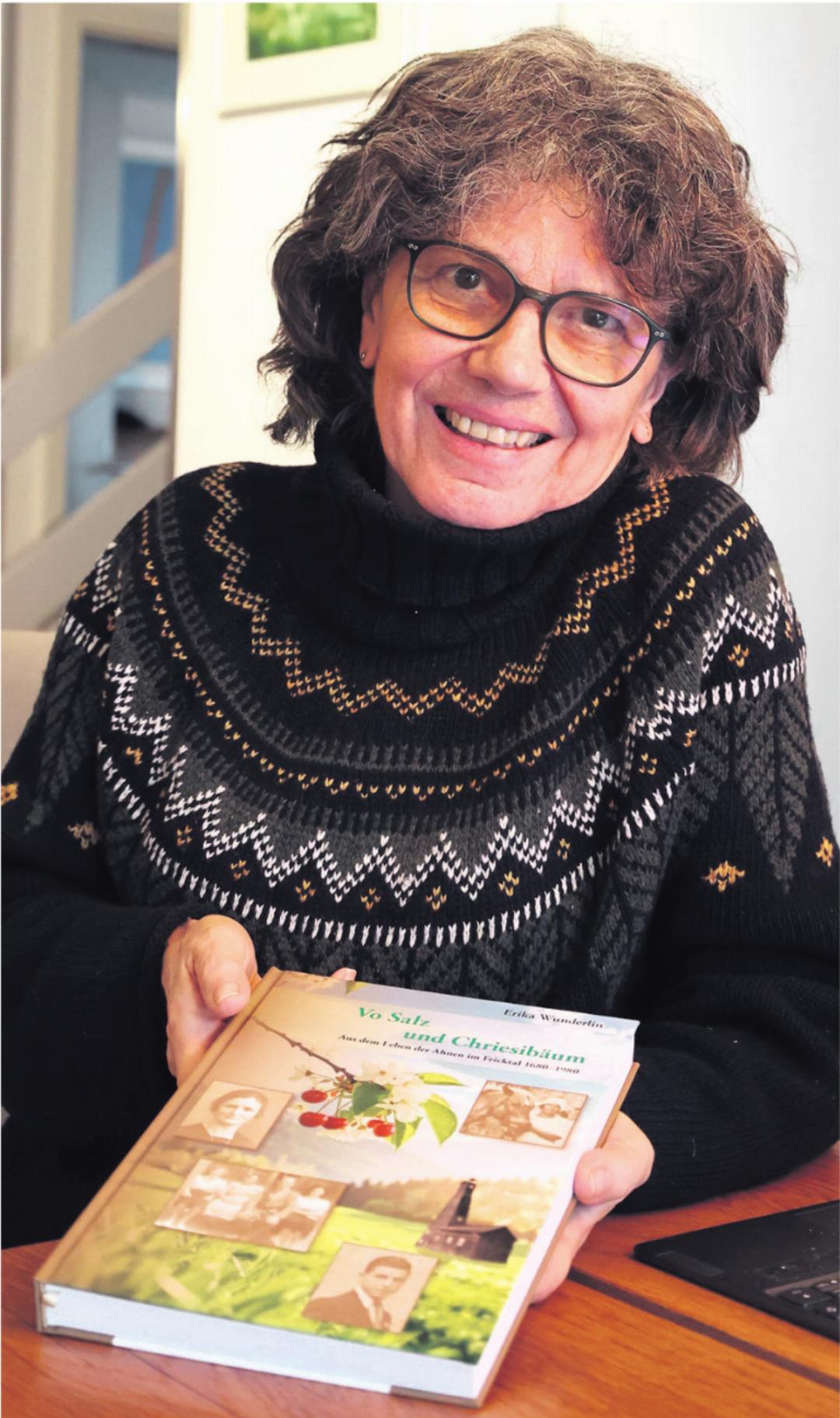 Seither widmet sich die in Küttigen und Udligenswil wohnhafte Zeiningerin intensiv ihrem grossen Hobby, der Geschichte. Einerseits ist sie seit zwei Jahren Präsidentin der Schweizerischen Vereinigung für Geschichte der Veterinärmedizin (SVGVM). Andererseits beschäftigt sie sich intensiv mit ihren Ahnen und hat in den letzten sechs Jahren an ihrem Buch «Vo Salz und Chriesibäum» gearbeitet. Darin nähert sie sich drei Jahrhunderten Familiengeschichte an, von 1680 bis 1980. In ihrem Elternhaus in Zeiningen, das seit 1835 durch ihre Vorfahren väterlicherseits bewohnt wurde, hat sie viele Informationen in Form alter Postkarten gefunden. «Es war mir ein grosses Anliegen, die alten Dokumente zu kommentieren und in eine Abfolge zu stellen.» Mütterlicherseits sind Erika Wunderlins Wurzeln in Wegenstetten.