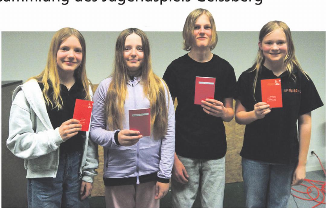 An ihrer diesjährigen Generalversam m lu ng bl ickten die Mitglieder des Jugendspiels Geissberg auf ein ereignisreiches Vereinsjahr zurück. Neben dem Jahresbericht des Präsidenten und des Dirigenten standen auch verschiedene organisatorische Traktanden sowie die Planung des neuen Vereinsjahres auf dem Programm. Besonders erfreulich war die Aufnahme von vier neuen Mitgliedern. Damit wächst das Jugendspiel weiter und zählt nun rund 27 junge Musikantinnen und Musikanten aus der Region. Das Jugendspiel Geissberg vereint Jugendliche aus dem Einzugsgebiet der Musikschule Region Laufenburg und bietet ihnen die Möglichkeit, gemeinsam zu musizieren und erste Erfahrungen im Ensemble zu sammeln.