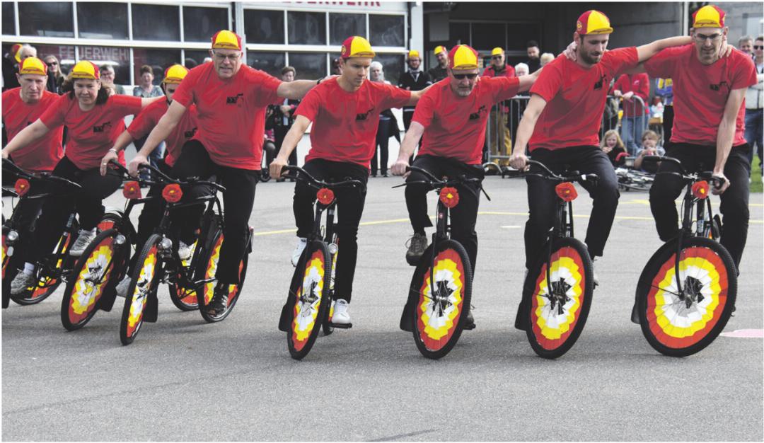 Der Jubiläumsanlass beinhaltete nicht nur einen von der ehemaligen Aktiven Sandra Weiss moderierten offiziellen Teil, sondern begann bereits am Sonntagmorgen mit einer Ausfahrt. Auf die Strecke von Sulz nach Gansingen und zurück wagten sich über 50 junge und ältere Radlerinnen und Radler. Wieder zurück in Sulz zeigten die Jugendlichen im Geschicklichkeits-Parcours ihr Können. Die schon etwas in die Jahre gekommenen, älteren Radsportschüler warteten mit einem Reigen auf dem Militärrad auf. Es ist dies eine Vorführung, die in Sulz ihren festen Platz hat. Bereits vor ziemlich genau 100 Jahren, nämlich am Jugendfest von 1926, hatte der Radfahrerverein «Helvetia» Sulz, der Stammverein der Radsportschule, mit einem derartigen Reigen aufgewartet. «Schön, dass diese Tradition weitergeführt wird. Damit alles klappte, brauchte es allerdings unzählige Trainingsstunden», verriet Philipp Rheinegger. Bis vor wenigen Jahren machte der ehemalige Vereinspräsident selbst am Reigenfahren mit. Jetzt gab er dem neu ins Leben gerufenen Sulzer Achter mit der Pfeife den Ton an.