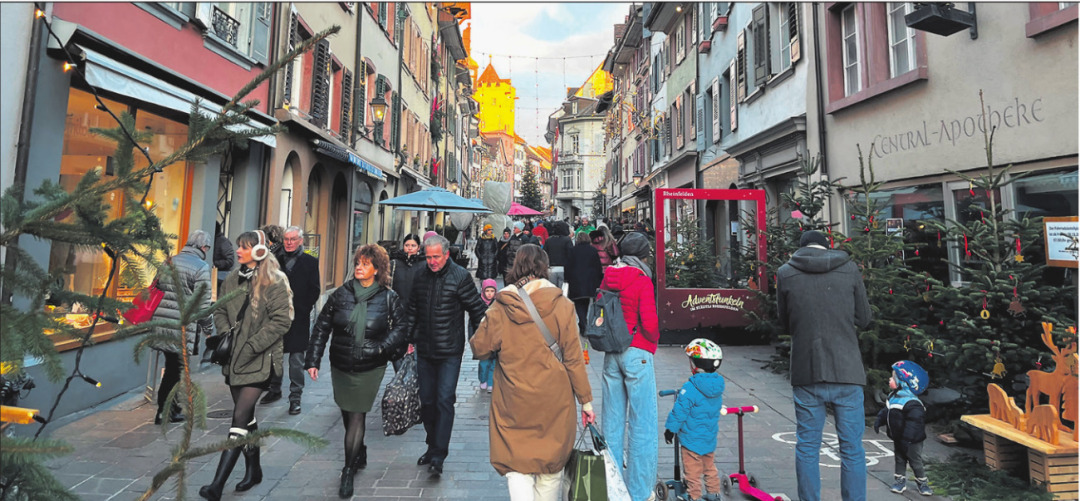 Das weihnachtlich dekorierte Städtli lockte viele Leute an, welche durch die Gassen flanierten und den einen oder anderen Einkauf tätigten. Gut besucht waren die Restaurants und Cafés. (vzu)