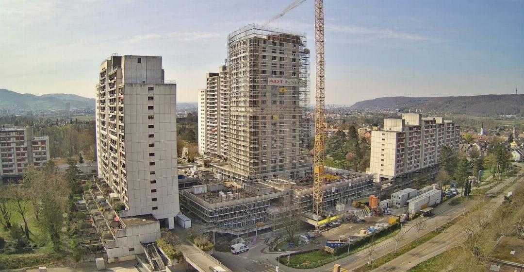 Aus der Mitte der Liebrüti-Siedlung in Kaiseraugst erhebt sich der neue Wohnturm Domus. Er überragt bereits die bestehenden Gebäude, bald erreicht er die geplante Höhe. Am 16. April kann die Aufrichte gefeiert werden. «Die Bauarbeiten schreiten gut und planmässig voran. Das Projekt befindet sich aktuell im vorgesehenen Zeitplan», erklärt Astrid Styger von der Varioserv AG, welche die Wohnungen in der Liebrüti bewirtschaftet. Mit dem Domus entstehen 125 Wohnungen sowie Dienstleistungs- und Verkaufsflächen, es wird auch wieder ein Hallenbad geben. Die Firma ALTO Real Estate AG investiert rund 100 Millionen Franken.