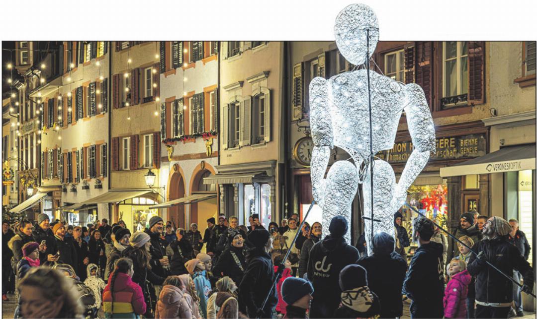 09.12.2025Der leuchtende Riese Dundu ist am Freitag und Samstag durch die weihnächtliche Rheinfelder Altstadt gezogen. Ein grosses Publikum hat ihn dabei begleitet. Scheinbar schwerelos schwebte die Lichtfigur, geführt von Puppenspielern, durch die Gassen. (vzu)
