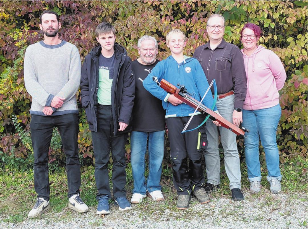 Die 30m Armbrustschiessen-Saison ging letztes Wochenende erfolgreich zu Ende. Sieben aktive Mitglieder kämpften bei sehr windigem Wetter um gute Resultate. Hans Zürcher gewann das Endschiessen, gefolgt von Renate Schmid, Konrad Fricker, Sabine Venhoda, Yvonne Imhof Reinis und Leimanis Reinis. Im «Sie und Er-Stich» hatten Sabine Venhoda und ihr Sohn Yannik die Nase vorne. Auf dem 2. Platz folgten Yvonne und Thomas Imhof und den 3. Platz holten sich Renate und Sebastian Schmid. Der Glücksstich besteht aus einer ganz speziellen Scheibe. Dieses Jahr war es der Goldesel aus dem Märchen «Tischlein deck dich». Wer den Esel traf, hatte minus 50 Punkte. Die goldigen Taler hatten verschiedene Werte, die es zu treffen galt. Auch diesen Sieg holte sich Hans Zürcher wieder vor Renate Schmid. Dieses Jahr waren drei Jungschützen am Start. Tobias Imhof und Thomas Fenner schossen aufgelegt und Julia Röthlisberger, sie schoss das erste Mal frei. Abgerundet wurde der Abend mit einem feinen Nachtessen. Reinis Leimanis ist das neuste Mitglied. Er trainiert seit zwei Jahren bei den Armbrustschützen und dieses Jahr hatte er zum ersten Mal aktiv an den Wettkämpfen teilgenommen und gute Resultate erzielt. (mgt)