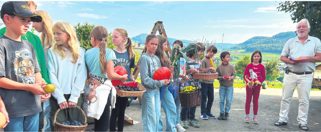 Zahlreiche Gottesdienstbesucher fanden am Sonntag, 21. September, den Weg zum Bauernhof der Familie Schmid in Gipf-Oberfrick, wo sie vom Regenbogenchor, unter der Leitung von Johannes Böhler, mit dem Lied «Freu dich und singe» begrüsst wurden.