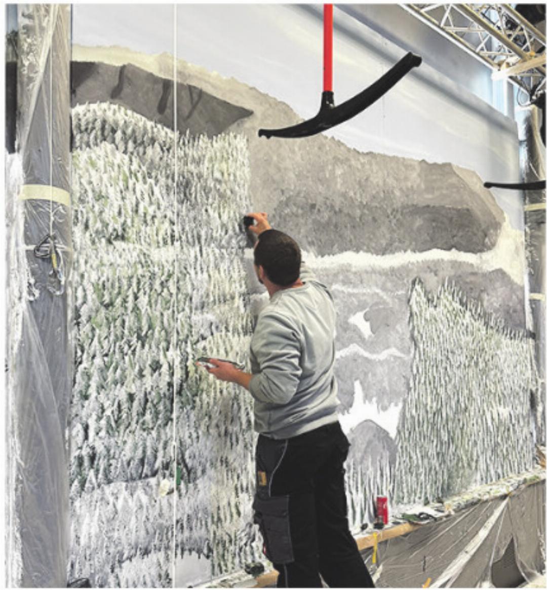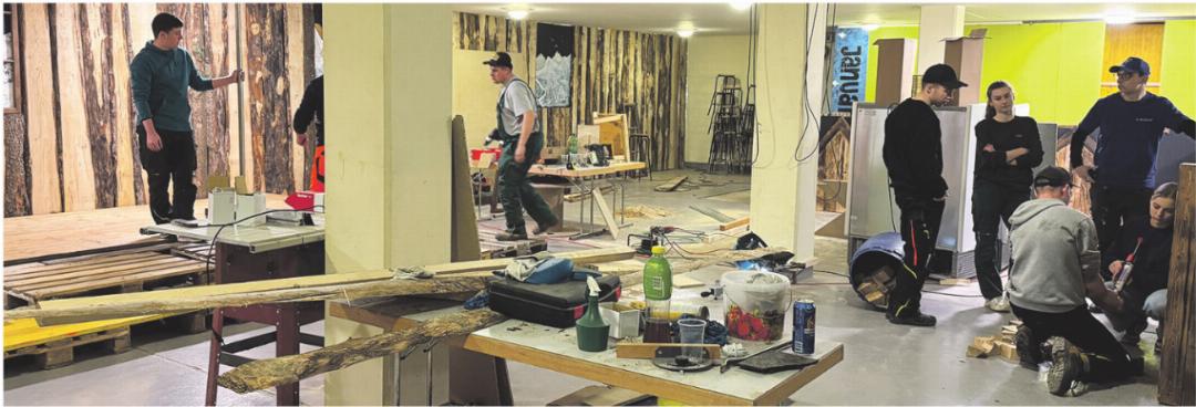 Sie sägen, schrauben, streichen, kleben und dekorieren. Wer noch keine handwerkliche Erfahrung hat, lässt sich von den Profis instruieren. Jede Hilfe ist willkommen, alle packen mit Freude mit an. Wenn die Show am 9. Januar beginnt, wird Schnee aus zwei Schneekanonen (sie stammen aus Arosa) den Weg vom Vorplatz zur Halle säumen und die Besucher der seit Wochen ausverkauften Turnshow werden in eine perfekt inszenierte Winterwelt eintauchen. Dass die Winterlandschaft – basierend auf einer 180-Grad-Drohnenaufnahme – eigentlich in einer Turnhalle liegt – die Turngeräte wurden alle ausgelagert – das Essen auf der «Strihe-Alp» im Prinzip aus dem Geräteraum kommt und auch unter der komplett holzverkleideten Bar, der «Schittlihütte» (zugänglich auch ohne Ticket und mit Live-Übertragung der Show) die nüchterne Halle steckt – die Besucherinnen und Besucher werden es vergessen. Die «Huebmet» war schon beim Besuch der NFZ am 29. Dezember nicht wiederzuerkennen, was erst wird los sein, wenn die 300 Plätze in der Zeit vom 9. bis zum 17. Januar an sechs Abenden belegt sind?