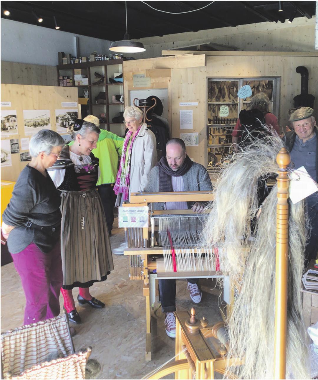 Direkt beim Dorfplatz bestand die Gelegenheit, sich in alte Zeiten zurückzuversetzen zu lassen. In der alten Dorfschmitte konnte man dem Schmied bei seiner Arbeit über die Schulter schauen und im Dorfmuseum des VVM Maisprach wurde aus dem Maispracher-Flachs vor Ort ein Tuch gewoben. Zudem zeigten zwei Spinnerinnen an ihren Spinnrädern wie die speziellen Flachsfasern zu einem Faden gesponnen werden. Im Museum wurde über die Entstehung und Geschichte der Postautolinie 100 anlässlich des 100. Geburtstages informiert. So zum Beispiel auch über den Zeitpunkt, als das Postauto die Postkutsche ablöste. Was hier alles zusammengetragen wurde, ist einfach grossartig: Alte Billette, Zangen, Uniformen der Postautofahrer und vieles mehr liessen jüngere Besucher staunen und bei älteren Besucherinnen und Besuchern kamen Erinnerungen an längst vergangene Zeiten und Erlebnisse mit dem gelben Postauto auf. Auch die vielen Fotos von Menschen und Gebäuden im Dorf stiessen auf grösstes Interesse.