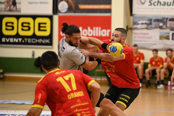 Möhlin mobilisierte aber immer wieder seine Kräfte, ob in der Abwehr oder mit schnellen Angriffen und überzeugte mit Abschlüssen vom Flügel, vom Rückraum oder mit Einzelaktionen. Noch gelang aber nicht alles, Kreisläufer Mitch Giezeman setzte seine Sprungkraft zu perfekt ein, flog fast in den gegnerischen Torhüter Andreas Wieser, der Hüne mit Bundesliga-Erfahrung, der zweimal gegen ihn hielt. So konnten die Genfer in der 23. Minute kurzzeitig mit drei Toren in Front gehen. Ihre folgenden Zeitstrafen gegen Kreisläufer Mehdi Kerboua und später gegen Stéphane Chardon nutzte Möhlin und verkürzte durch Ben Romdhane und Xavier Franceschi zum 15:16 (25.). Nach der Auszeit der Genfer erhöhte Erwan Parville und das Heimteam antwortete mit Toren von Lucas Grandi, der drei Bälle ins Netz schleuderte. Der letzte Wurf landete mit der Pausensirene hinter Keeper A ndreas Wieser und bescherte die umjubelte knappe Pausenführung.