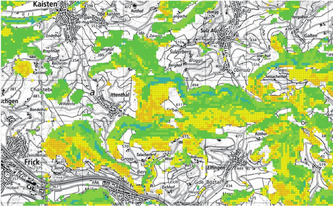 Im Kanton Aargau sind Waldbrände bisher selten und können rasch gelöscht werden. Bedingt durch die klimatischen Entwicklungen wird sich das Risiko für Waldbrände im Aargau aber verändern. Deshalb hat die Abteilung Wald des Departements Bau, Verkehr und Umwelt (BVU) zusammen mit der Aargauischen Gebäudeversicherung (AGV) einen Bericht in Auftrag gegeben, um das Potenzial für Waldbrände im Aargau zu untersuchen und Handlungsempfehlungen abzugeben. Das Projekt wurde im Rahmen des Entwicklungsschwerpunkts Klima des Kantons realisiert. Im Rahmen der Untersuchung wurden mithilfe von Geodaten Wälder identifiziert, die eine erhöhte Waldbrandgefahr aufweisen. Zudem wurde ein besonderer Fokus auf die Walderschliessung als Zufahrt für die Brandbekämpfung, auf Infrastruktur, welche durch Waldbrände gefährdet sein könnte und auf die Schutzwälder gelegt. Aus den Analysen konnten Schwerpunkte für die weitere Zusammenarbeit zwischen den involvierten Akteuren sowie für die Aus- und Weiterbildung der Feuerwehren identifiziert werden.