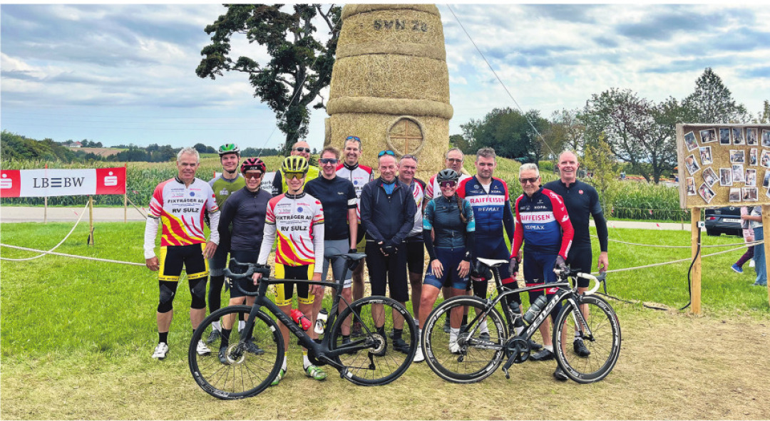Von Sulz aus radelten die 14 Frauen und Männer via Koblenz und Gurtweil nach Witznau, entlang dem Witznauer Stausee und auf der berüchtigten Betonstrasse der Schwarza entlang hoch bis zum 1020 m.ü.M. liegenden Kulminationspunkt in Höchenschwand. Nicht nur die Bergfahrt in der abgelegenen und naturbelassenen Gegend ist jeweils eindrücklich, sondern auch der Besuch bei der Strohskulpturen-Ausstellung in Höchenschwand. In rasanter Fahrt brausten die Rennradfahrerenden danach via Albtal zurück nach Albbruck, Laufenburg und Sulz. Die Sonntagsrunde mit 80 Kilometern Distanz und beinahe 1000 Höhenmetern hatte es in sich.