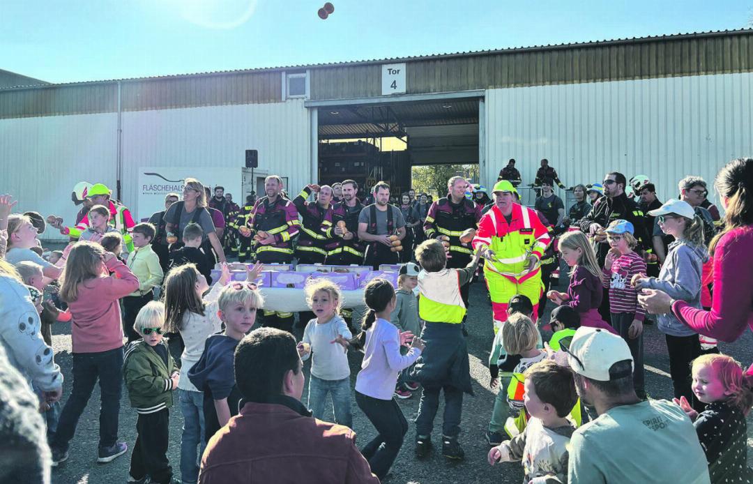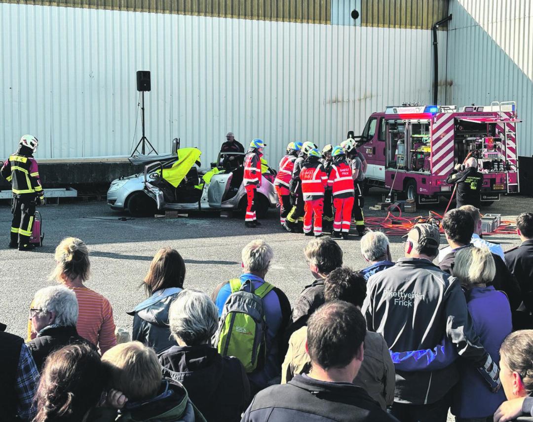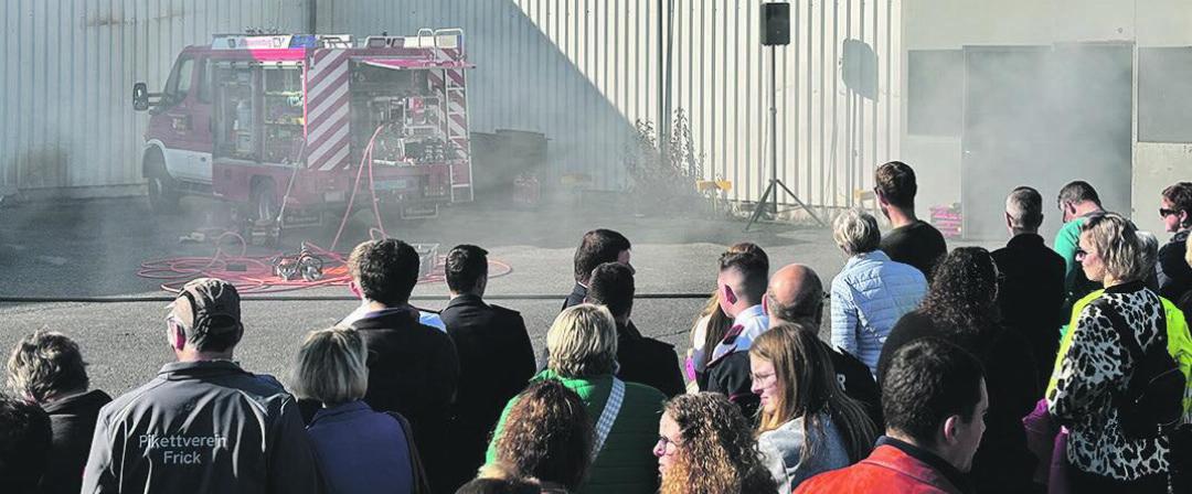 Nach und nach füllte sich am Samstag das Gelände der Firma Stahlton AG in Frick mit grossen und kleinen Interessierten. Sie alle wollten die Stützpunkt-Feuerwehr Frick bei ihrer Endprobe erleben. Und schon war es so weit: Bei strahlendem Sonnenschein und warmen Oktober-Temperaturen fuhren die ersten Feuerwehrfahrzeuge mit lauten Sirenen ein. Nach einer kurzen Begrüssung durch die Verantwortlichen wurde es dann schnell hektisch. Das Szenario zeigte ein zerbeultes Auto und einen Fahrer in Not. Schnell musste gehandelt werden. Der Einsatzleiter befand sich immer zuerst am Einsatzort. Er verschaffte sich einen Überblick, koordinierte sein Team und orientierte sich am Geschehen. Parallel dazu wurde bereits präventiv das Ersthelferzelt der Sanität aufgebaut. Nach dem geglückten Einsatz am Fahrzeug brauchte es das Atemschutz-Team sowie die Tanklöschfahrzeuge (TLF). Auch hier war die Kommunikation das A und O. Um nicht zu viel Zeit zu verlieren und die höchste Sicherheit gewährleisten zu können, sind die Informationswege immer so kurz wie möglich zu halten.