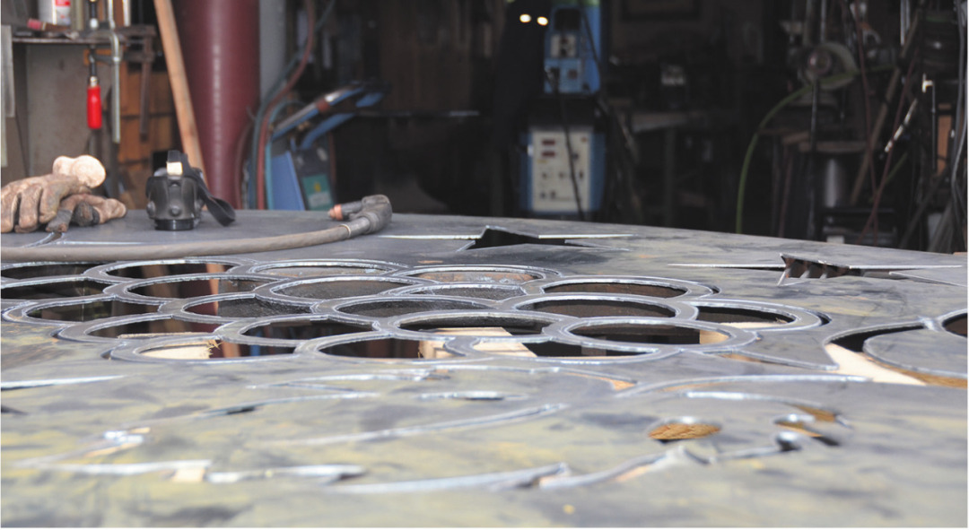 Das Material, das Schwarz für den Kreiselschmuck verwendet, ist ein Gemisch aus Chromstahl und Eisen, «wobei der Chromstahl aus Sicherheitsgründen nicht spiegeln darf, weshalb ich ihn schleife». Mit der Zeit, so Schwarz, werde die Aussenhaut rostig. «Ein schöner Kontrast zum angeschliffenen Chromstahl.»