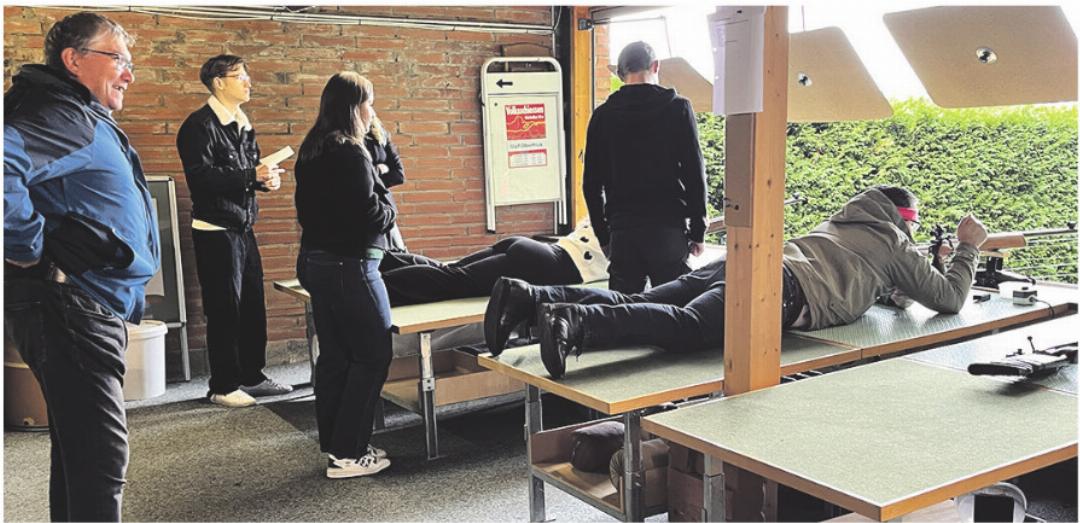 Nach dem Eintreffen um 10 Uhr konnte der Projektleiter René Herrmann die Sponsorenfamilie begrüssen. Der Jungschützenleiter Ignaz Welte erläuterte die Ausbildung der Jungschützen. Mit grosser Freude teilte Ignaz Welte die sehr guten Resultate an den verschiedenen teilgenommenen Wettbewerben im laufenden Jahr mit. Nach einer kurzen Einführung für das Wettschiessen konnten sich die Sponsoren liegend hinter die Gewehre begeben. Auch wenn noch nicht alle jemals mit einem Kleinkalibergewehr geschossen haben, erkannte man die Freude an diesem Sport. Nach Beendigung des Wettschiessens wurden die Teilenehmer zu einem Apéro in die geheizte Schützenstube eingeladen. René Herrmann nutzte diese Zeit, um eine Rangliste zu erstellen. Das Küchenteam mit Priska und Bruno Wettstein servierte anschliessend ein hervorragendes Mittagessen mit Dessert.