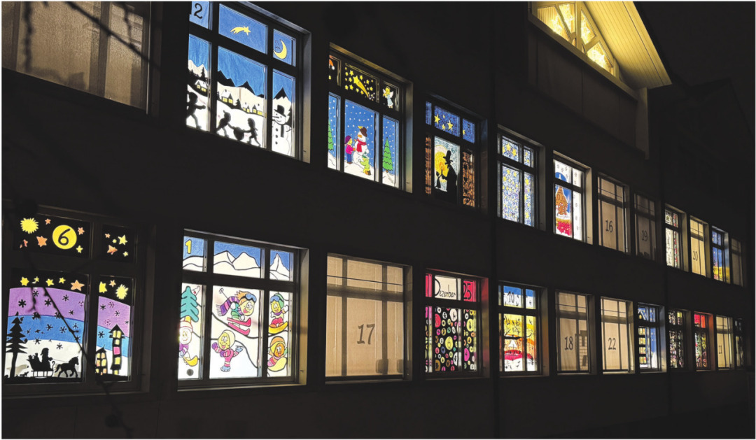 18.12.2025 FrickWenn der Dezember Einzug hält, wird es jedes zweite Jahr an der ganzen Fensterfront des Schulhauses 1957 auf dem Areal der Schule Dorf in Frick besonders magisch.