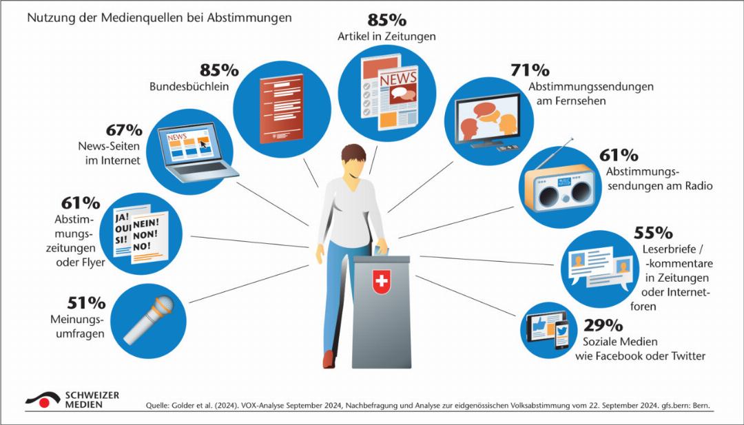 Die neue Studie «Mediennutzung 2035 – Studie zur Zukunft der Informationsmedien» des Forschungszentrums Öffentlichkeit und Gesellschaft (fög) der Universität Zürich analysiert internationale Trends, Nutzungsdaten für die Schweiz sowie Einschätzungen von Expertinnen und Experten zur Zukunft des Journalismus. Das grössere Vertrauen in den Journalismus dürfte sich im direkten Vergleich mit digitalen Plattformen weiter akzentuieren. Aus den Befunden der Studie ergibt sich klarer politischer Handlungsbedarf, insbesondere bei der Medienförderung, beim Schutz des geistigen Eigentums und bei der Förderung der Medienkompetenz.