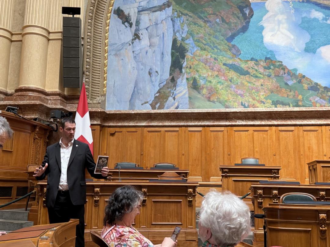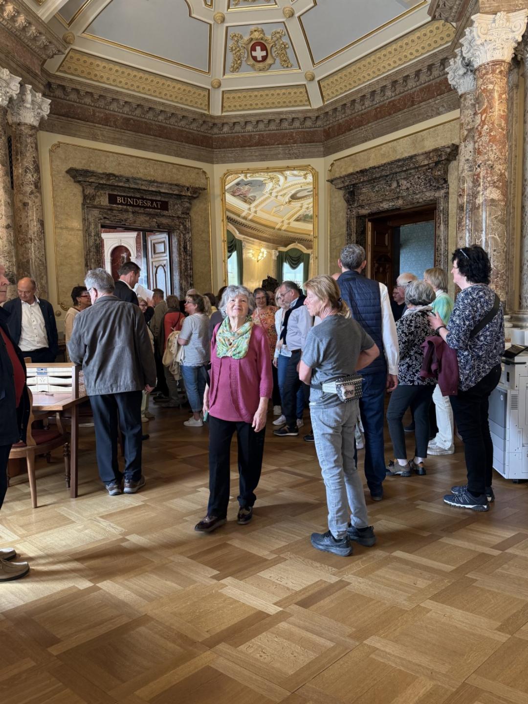 Ein besonderes Fricktaler Treffen gab es am Freitag in Bern. NFZ-Leserinnen und -Leser nutzten die Gelegenheit, Einblicke in das Bundeshaus zu bekommen. Die rund 50-köpfige Gruppe wurde ebenfalls durch einen Fricktaler durch das Bundeshaus geführt. Der Zeiher SVP-Nationalrat Christoph Riner nahm die Gruppe mit auf eine spannende, informative wie auch abwechslungsreiche Tour durch das Gebäude und seine vielen Räume. Die guten Gespräche untereinander und auch mit Christoph Riner konnten auf der Car-Heimfahrt weitergeführt werden. (sh)