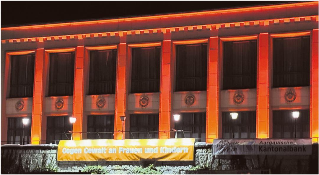 Orange Beleuchtung ist nur eines von zahlreichen Mitteln, dessen sich der Soroptimist International Club Fricktal bedient, um vom 25. November bis 10. Dezember auf geschlechtsspezifische Gewalt an Frauen und Mädchen aufmerksam zu machen.