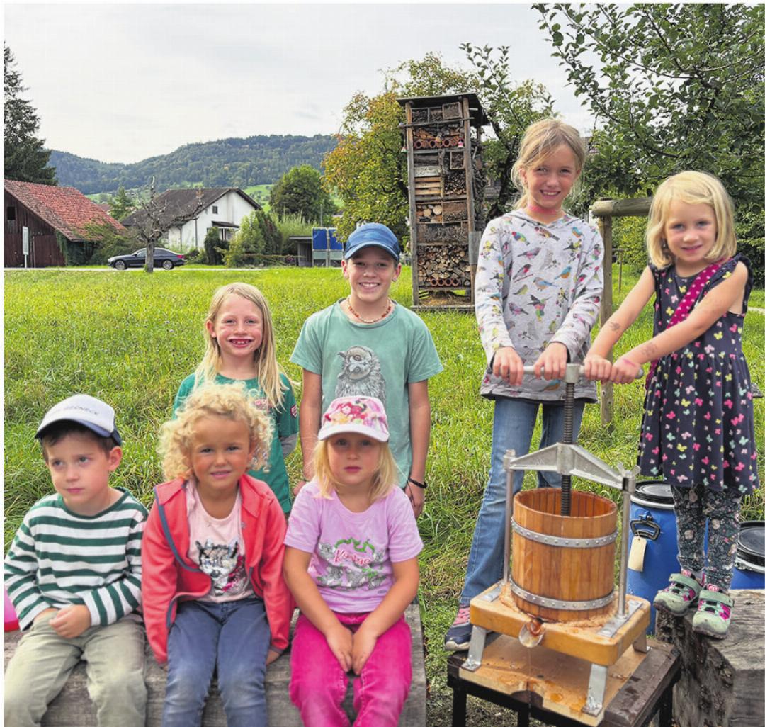 Am 13. September führte der Naturund Vogelschutzverein Gipf-Oberfrick erstmals einen Mosttag auf der Allmend durch. Familien aus dem Dorf waren eingeladen, gemeinsam Äpfel zu sammeln und frisch zu Most zu verarbeiten. Rund 15 Bäume lieferten die Früchte für den Anlass – darunter auch mehrere sogenannte Jahrgangsbäumli, die der Verein bereits vor über 20 Jahren im Dorf gepflanzt hatte. Mit grosser Begeisterung sammelten die Kinder und Teilnehmenden die Äpfel, schnitten sie in Stücke und häckselten sie, bevor sie diese mit einer Hand-Obstpresse direkt zu Saft verarbeiten und den frischen Saft in mitgebrachte Pet-Flaschen abfüllen konnten. (mgt)