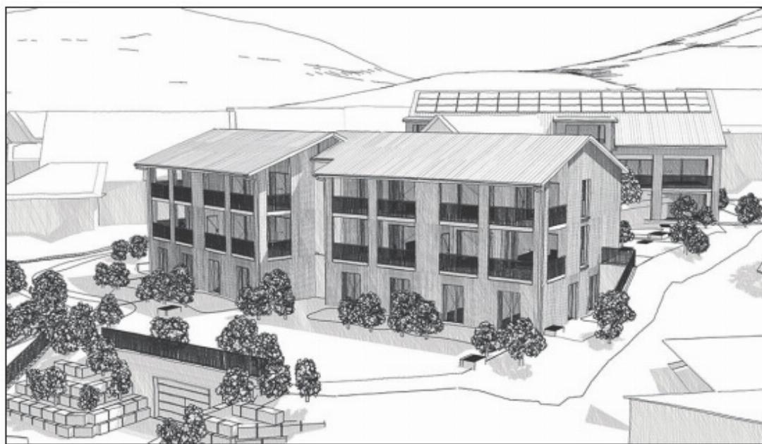 Auf der Parzelle im Hinterdorf (Dorfkernzone) sind zwei Mehrfamilienhäuser mit gemeinsamer Tiefgarage geplant. Die Erschliessung erfolgt über die Hauptstrasse. Zwischen den zwei Gebäudekörpern entsteht ein Aussenplatz mit der Möglichkeit für Aufenthalte und Aktivitäten im Grünen. Das Haus West besteht aus 6 hochwertigen Eigentumswohnungen, das Haus Ost aus 7 Mietrespektive Alterswohnungen. Ein gemeinsamer Aufenthaltsraum im Erdgeschoss trägt dazu bei, dass die Bewohner sich treffen und austauschen können. Die Begegnung der Menschen soll im Mittelpunkt stehen, damit die Lebensqualität gestärkt bleibt.