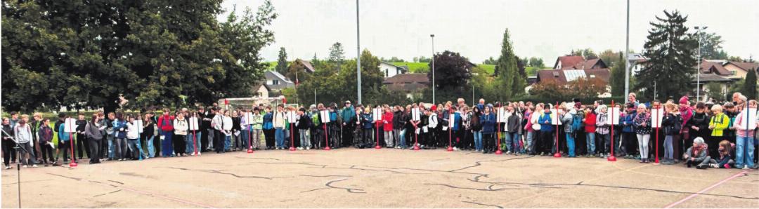 Schülerinnen und Schülern auf dem Schulhausplatz vorgetragen wurde, überreichte Martin Reichlin noch das verdiente Label. Der ehemalige Kantilehrer aus dem Kanton Schwyz hatte es vor 13 Jahren mitentwickelt und gehört nach wie vor dem Vergabegremium an. «Ihr seid ein motivierendes Beispiel für andere Schulen», zeigte er sich voller
