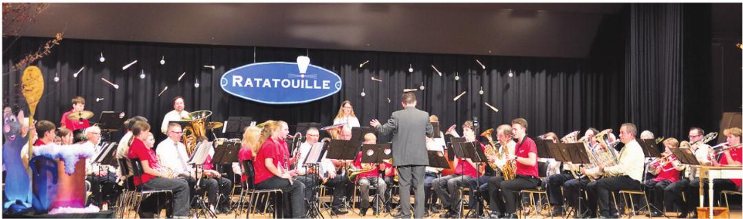 Musikalisch eröffnete die Musikgesellschaft den letzten Samstagabend mit dem energiegeladenen «Fast Forward» von Darrol Barry. Anschliessend folgte das Stück, das dem Konzert sein Motto verlieh: «Highlights from Ratatouille», ein Filmmusik-Medley von Michael Giacchino (arr. John Moss), welches das Publikum direkt ins Pariser Kinofeeling versetzte. Mit «Es Burebüebli goes strange» begeisterte Trompeter Gilles Primault mit einer schwungvollen Mischung aus Tradition und Jazz. Ebenso eindrucksvoll präsentierten sich Lio Senn am Waschbrett und Nicole Oswald an der Posaune im Stück «The Golden Age of Dixieland», das den ersten Konzertteil glänzend abrundete.