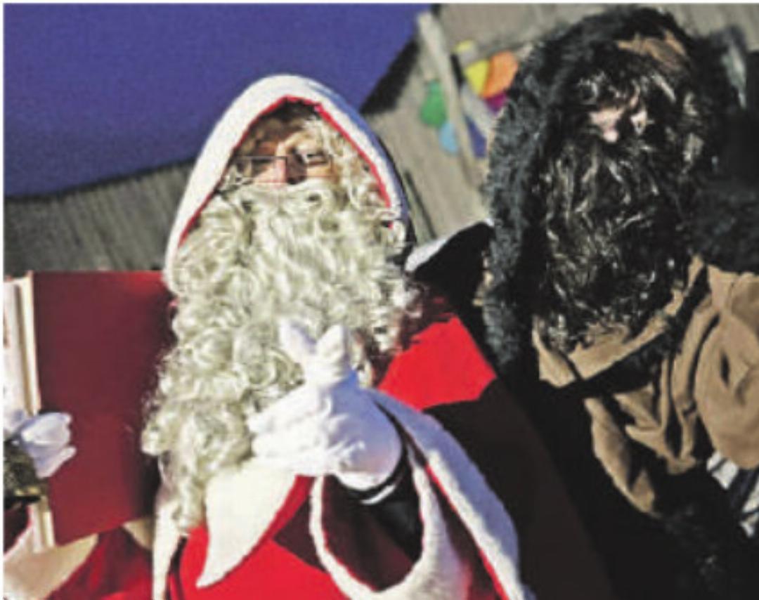 Seit 20 Jahren sind der Samichlaus und sein Schmutzli voller Herzblut mit dabei. Zu diesem Jubiläum überraschte die Präsidentin die beiden nach ihrem wertvollen Einsatz mit einem kleinen Apéro und überreichte ihnen eine grosse Flasche Prosecco und eine «Sternenlaterne». Im Namen des Theatervereins Spielleute Sisseln und der Gemeinde Sisseln dankt sie ihnen von Herzen für den grossen Einsatz und den Erhalt dieses schönen Brauchtums.