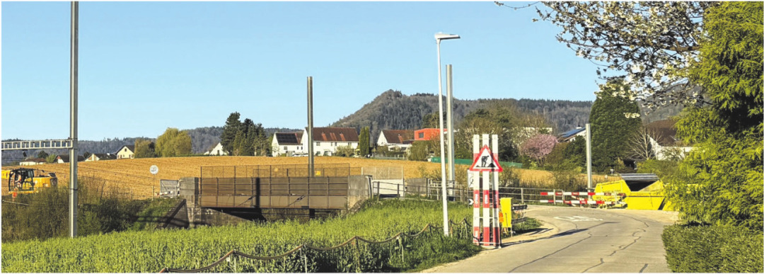 Eine Baustelle am Anfang und eine Baustelle am Ende – das trifft aktuell auf den Juraweg in Frick zu. Nach dem Einbiegen vom Kirchmattweg her in Richtung Schwimmbad herrscht auf einem Teilstück aufgrund der Arbeiten für den Fricker Wärmeverbund Einbahnverkehr. Am Ende des Weges befindet sich die SBB-Brücke. Ein Baustelleninstallationsplatz und Hinweistafeln weisen auf die Arbeiten am Übergang zwischen Frick und Gipf-Oberfrick hin. «Trotz steter Unterhaltsarbeiten nagt der Zahn der Zeit an der Brücke aus dem Jahr 1906. Nun ist ein Ersatz erforderlich», erklärt SBB-Mediensprecher Reto Schärli den Grund für die neue Brücke Rain.