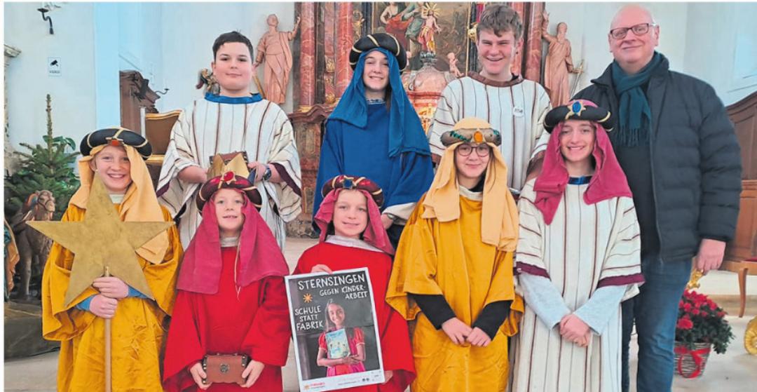 08.01.2026 ZeiningenBei kalten Temperaturen zogen am vergangenen Samstagnachmittag neun Kinder, verkleidet als Caspar, Melchior und Balthasar, durch Zeiningen. Sie gingen hauptsächlich bei denjenigen Familien vorbei, welche sich im Vorfeld für einen Besuch der Sternsingerinnen und Sternsinger angemeldet hatten. Die kleinen Könige und Königinnen sangen und sprachen den Segensvers, bevor sie den Segen an die Eingangstüren schrieben oder klebten.
