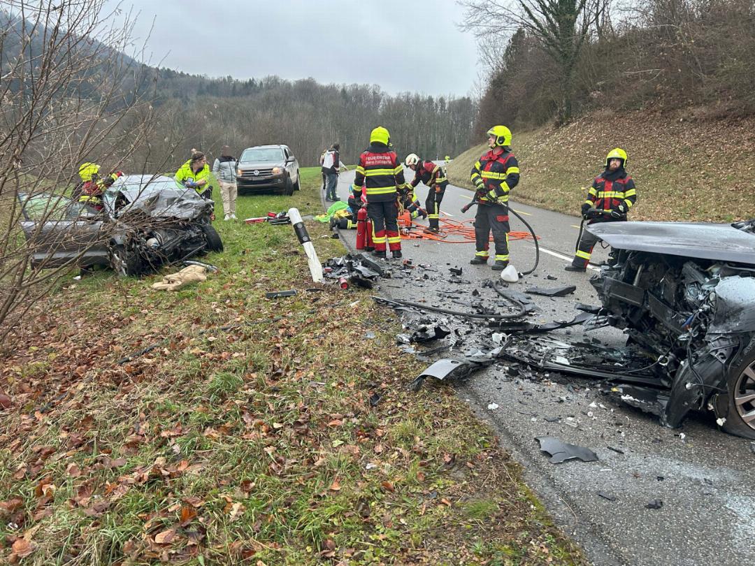 01.12.2025 PolizeimeldungenZwischen Schupfart und Wegenstetten stiessen am Sonntagnachmittag zwei Autos heftig frontal zusammen. Drei Personen wurden verletzt, eine von ihnen schwer.